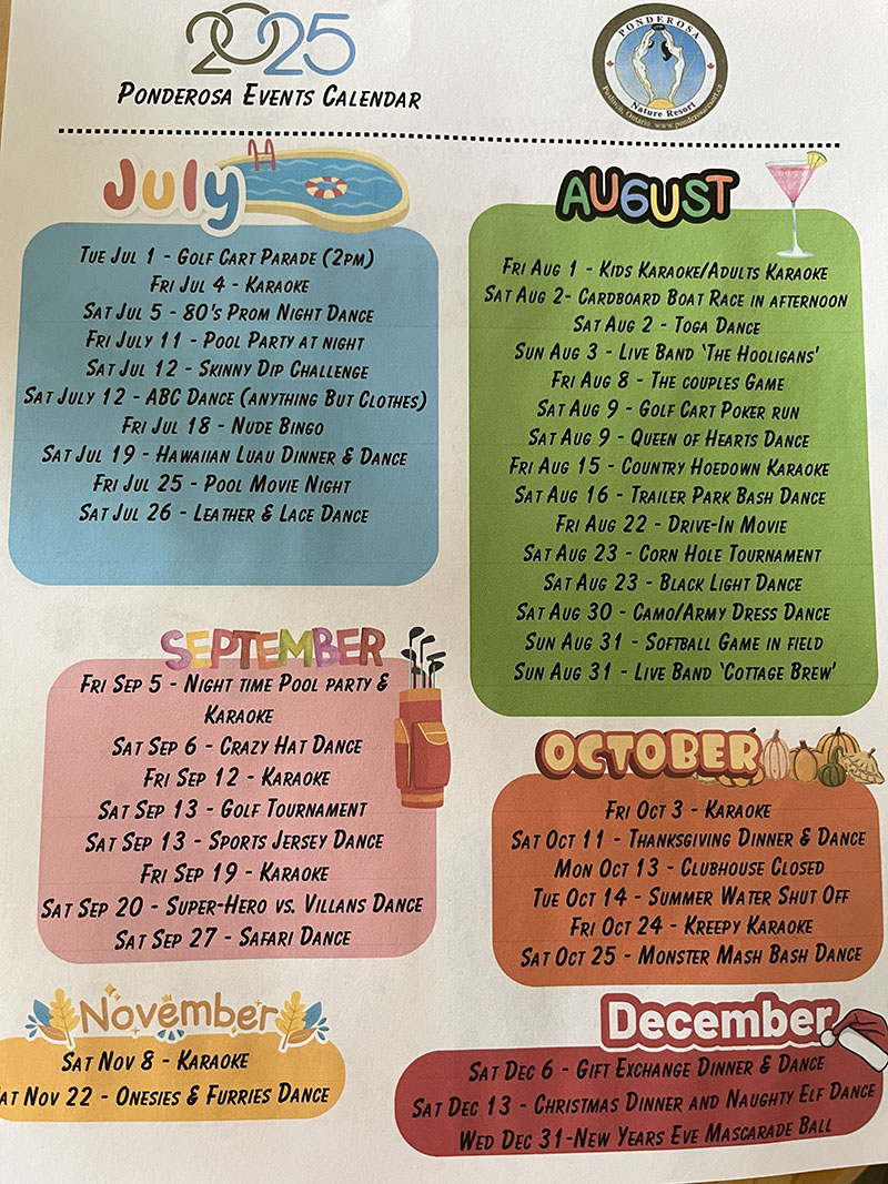 The Ponderosa Nature Resort was established in 1964. Since then nudists from all over the world have enjoyed the nudist lifestyle all year round. From dances, sports, concert events, karaoke nights and much more.